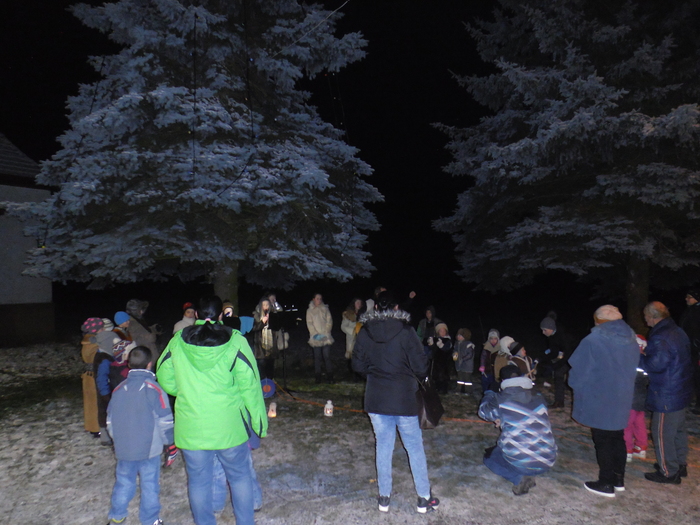 Stejně jako vloni se i o letošní první adventní neděli rozzářila světýlka vánočního stromu u prodejny. Po krátkém proslovu starostka p. Hanka Zárubová popřála všem občanům klidné prožití vánočních svátků a šťastný Nový rok. Celou akci obohatilo zpívání koled dětí.V chladném počasí a za zvuků koled, bylo možné popíjet výborný svařák a čaj, který pro návštěvníky akce připravil p. Libor Leffler. Vánoční strom nakonec rozsvítili děti společně s občany poslední koledou.